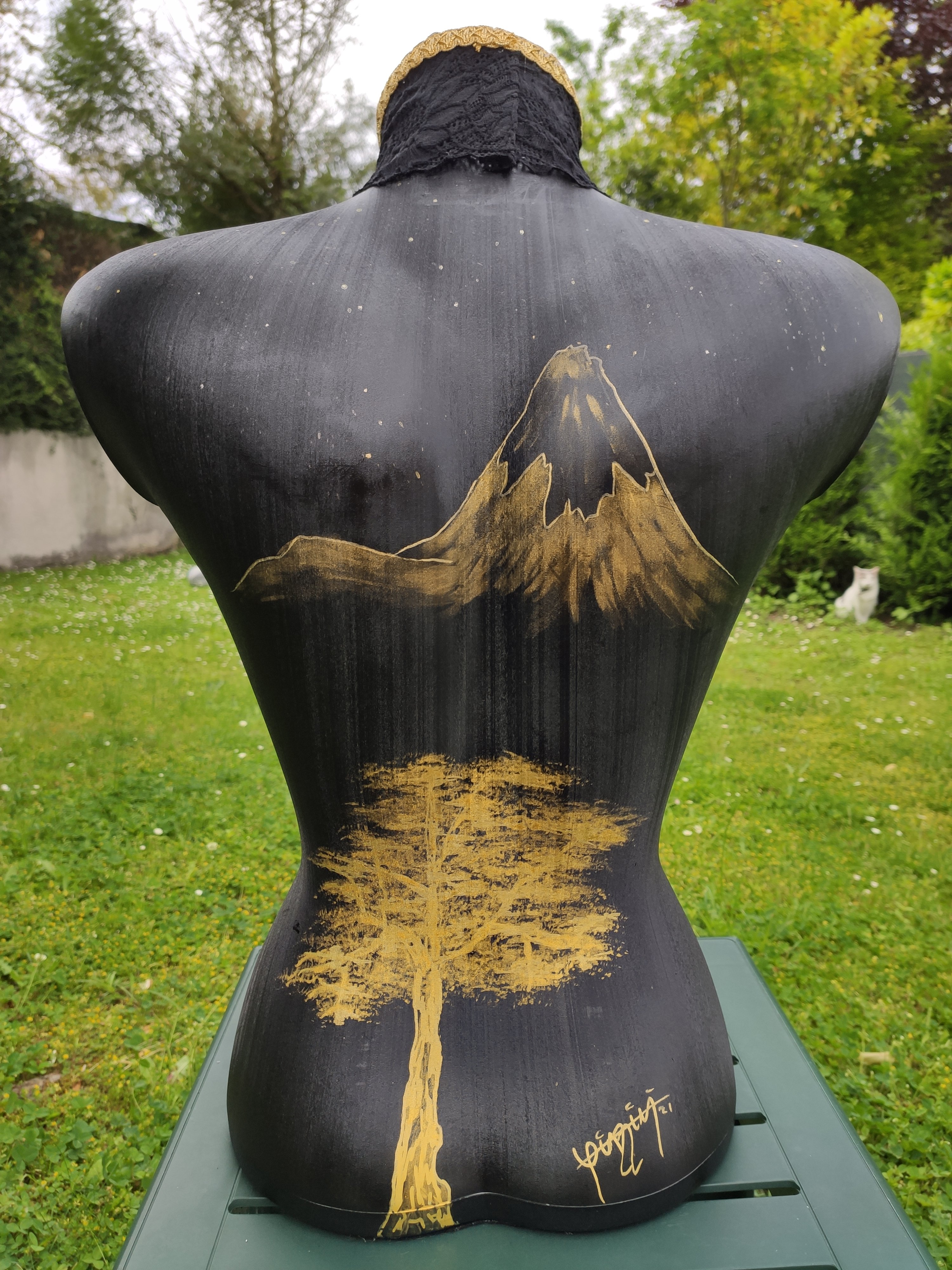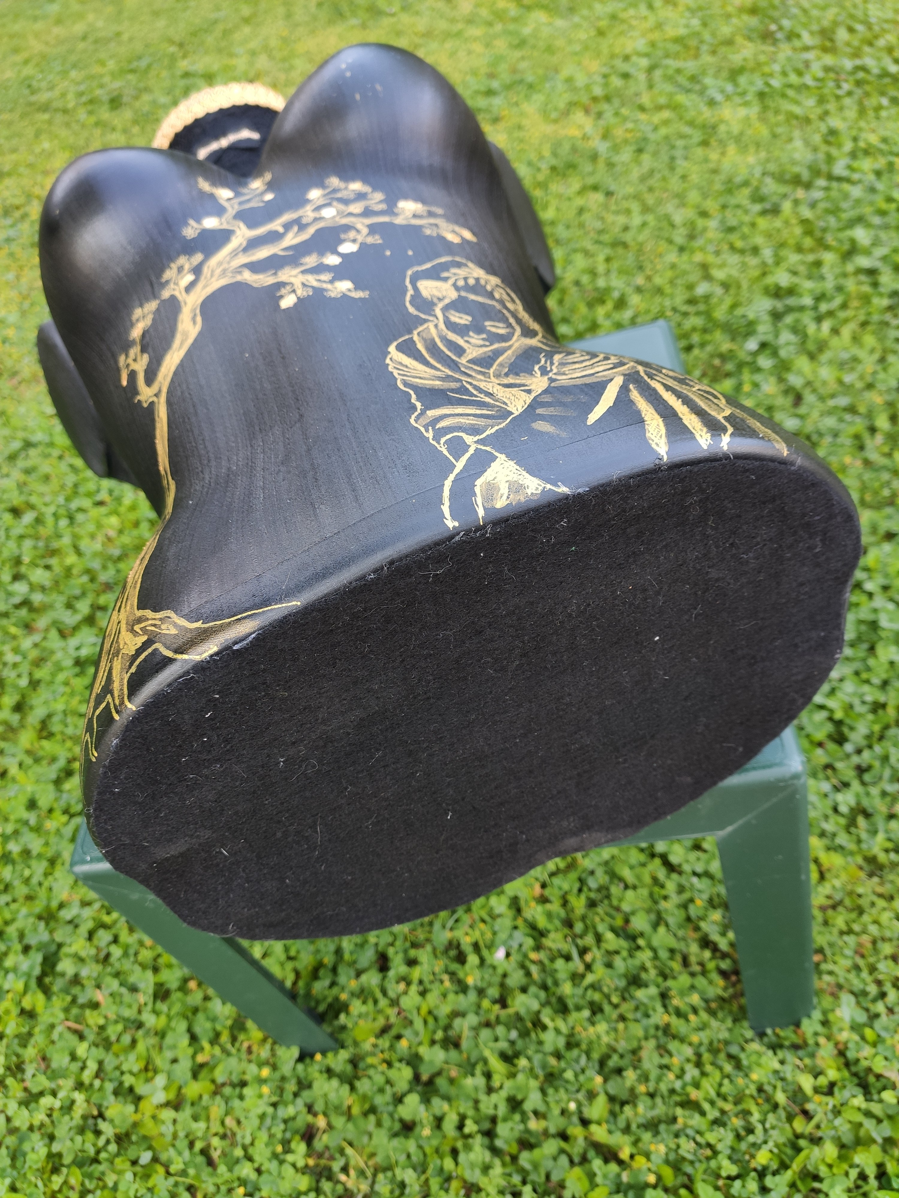 Voilà, je viens de finir 😉. Pour les dernières touches apportées : Un belle fleur de Lotus sur le côté et ajout de feuilles d’or sur le soleil couchant et le cerisier Japonais. Une petite signature au dos, 3 couches de vernis et c’est parti pour les finitions.
