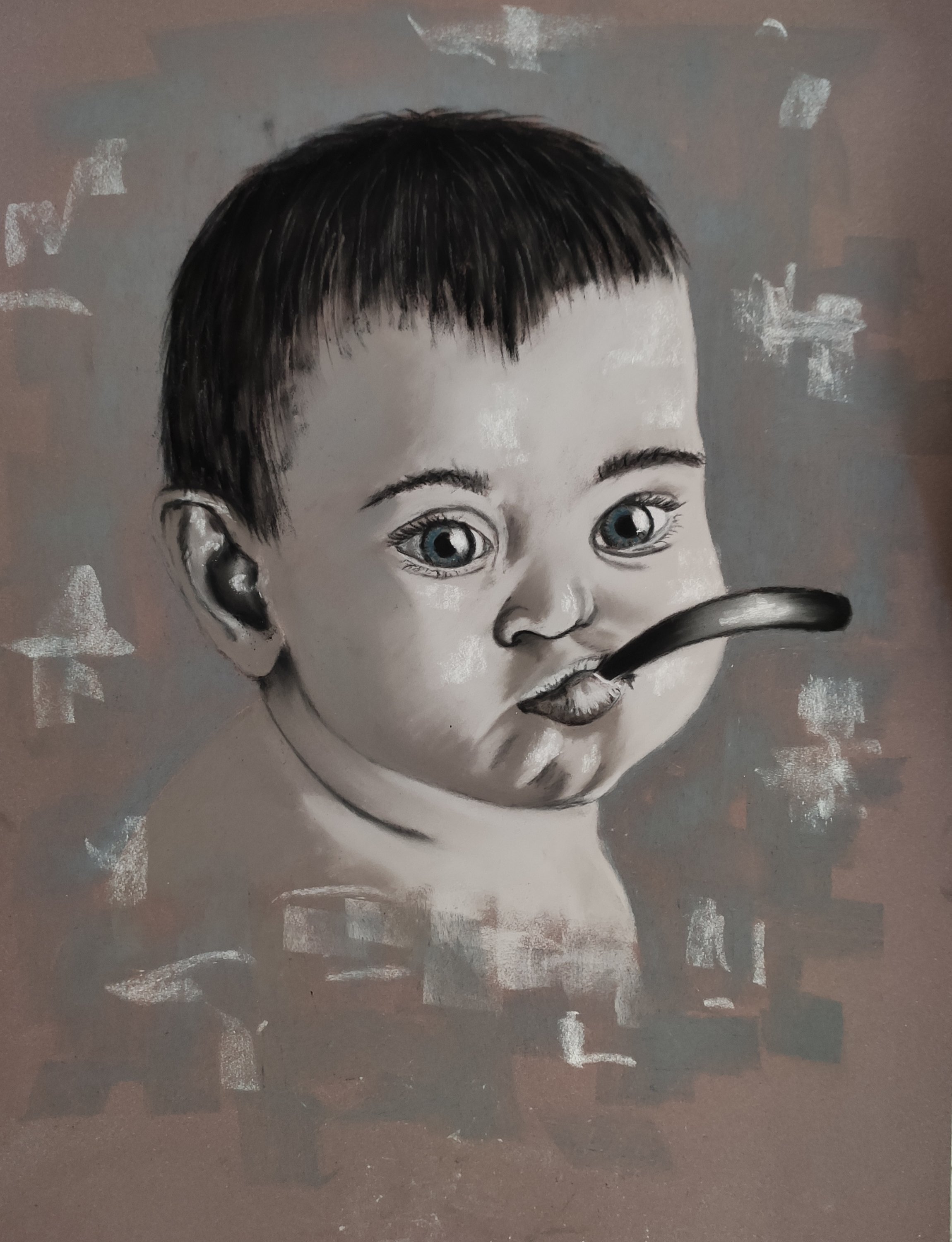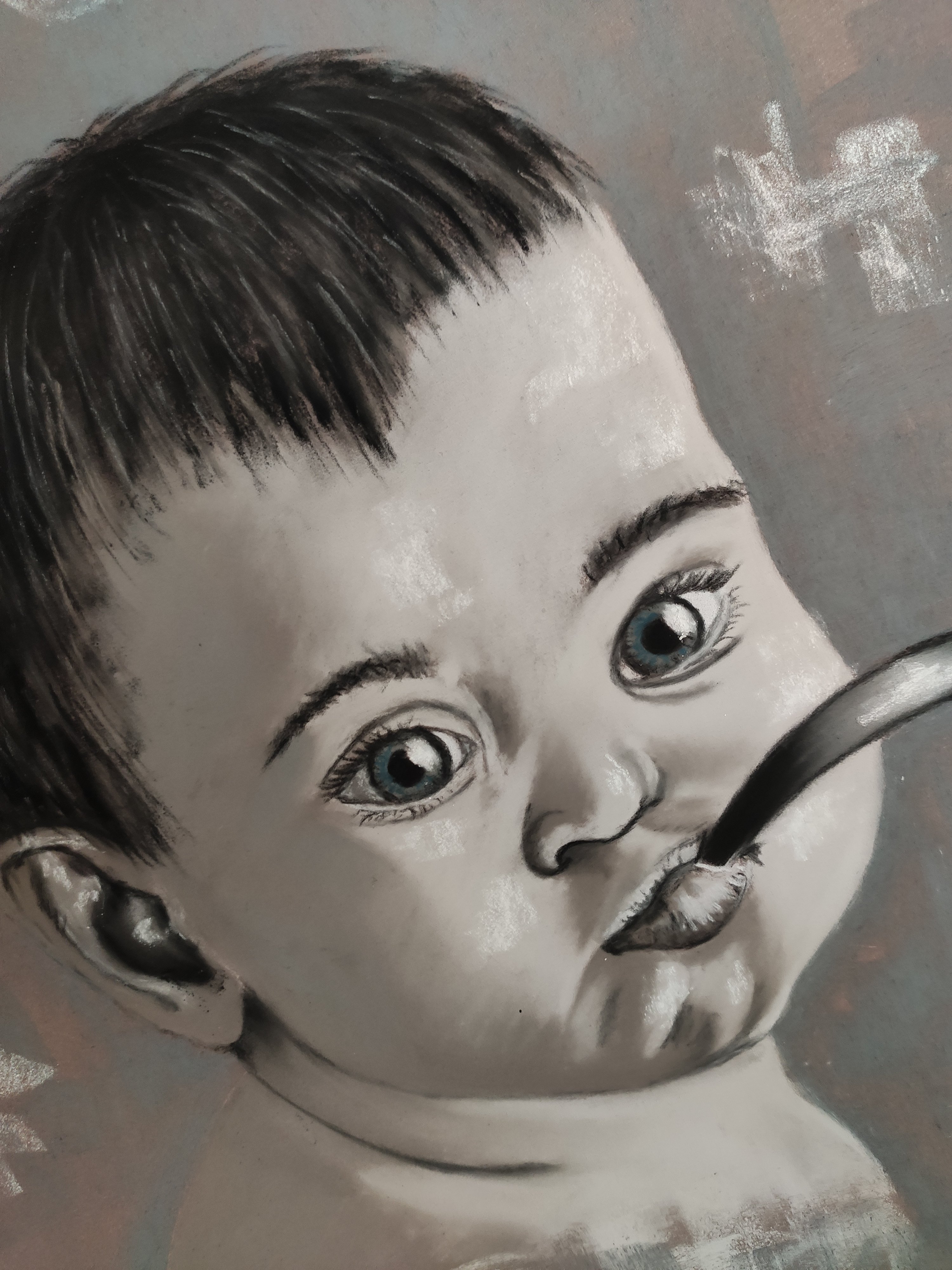 Allez pour se détendre aujourd’hui, un petit pastel dans un autre thème… Un bébé tout trognon 😜. Réalisé sur Pastelmat.