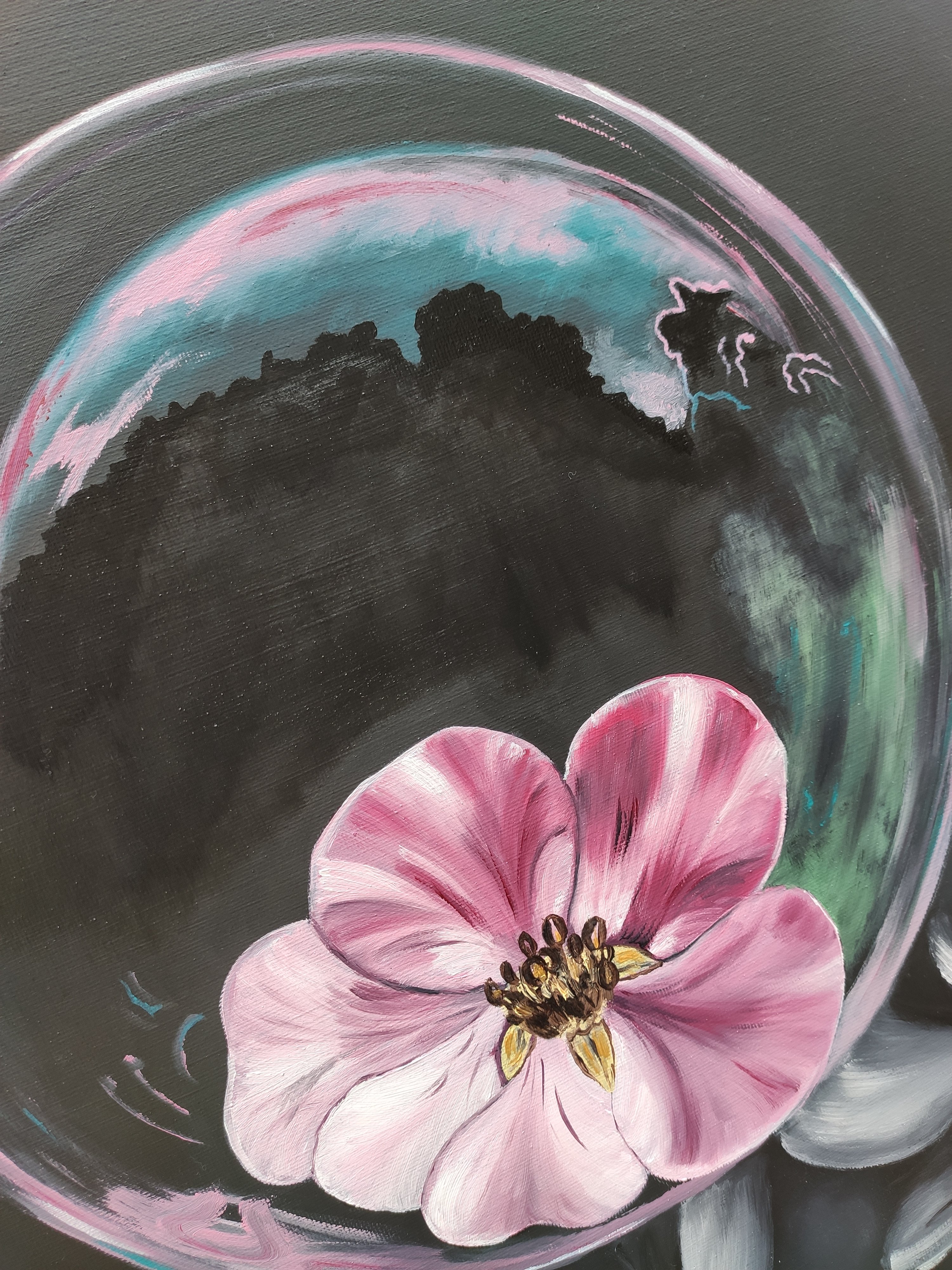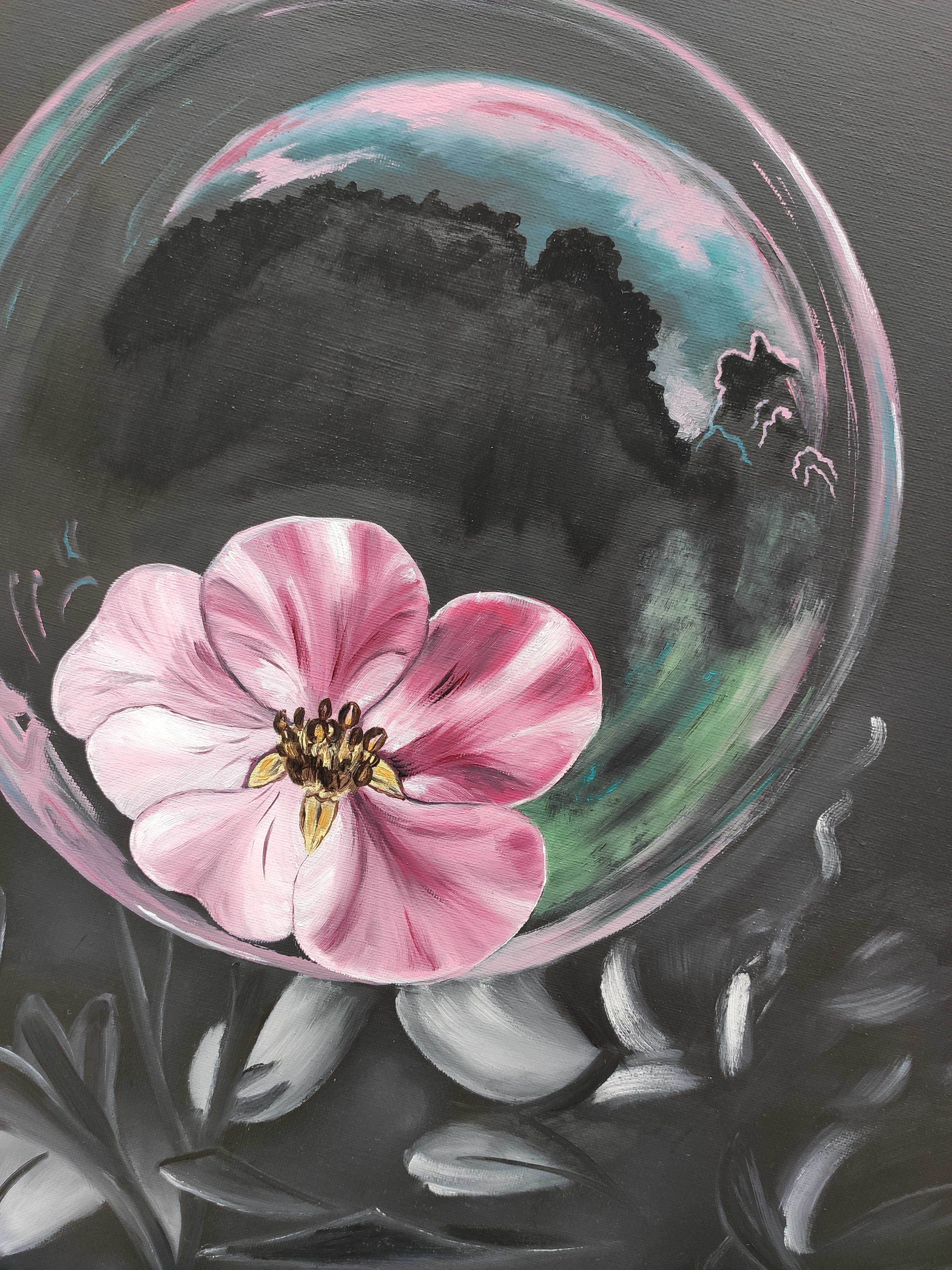 Mise en couleur de ma fleur de pommier et rajout de quelques reflets dans ma bulle de douceur 💖🌸.