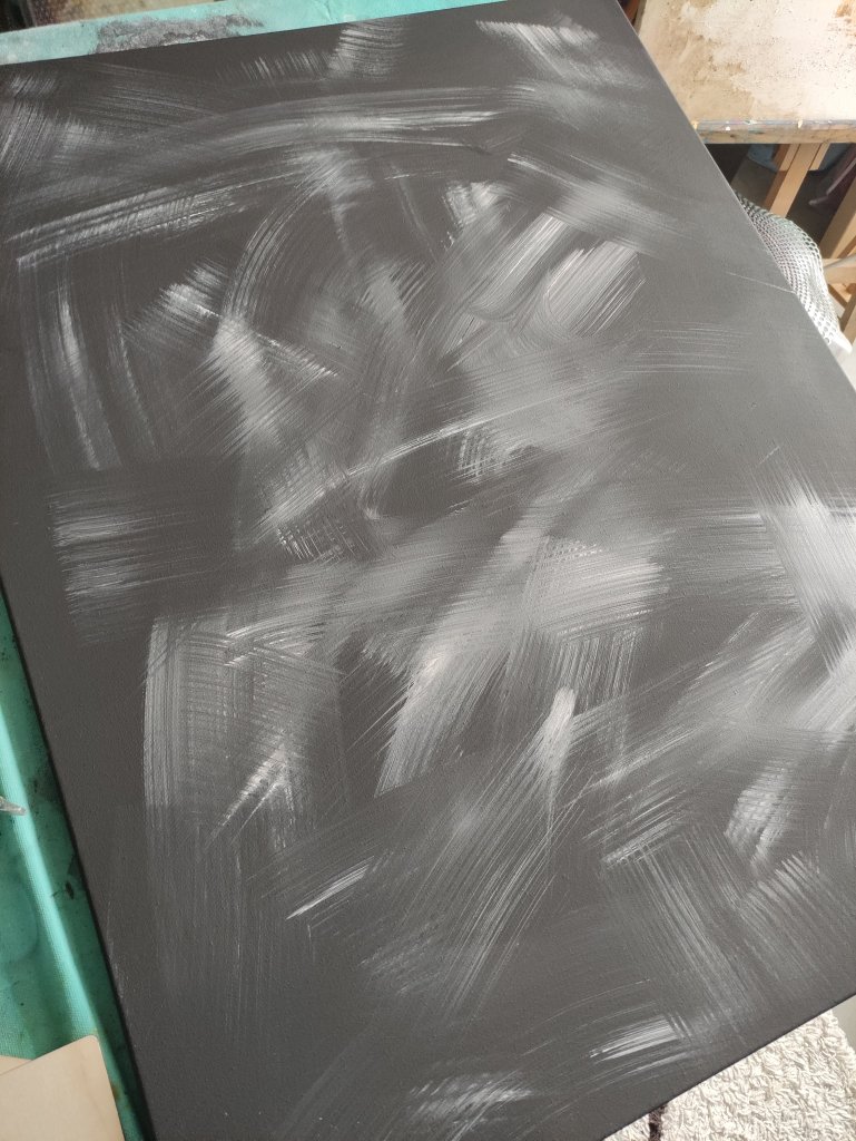 Préparation du fond au Gesso noir avec quelques touches de blanc.
