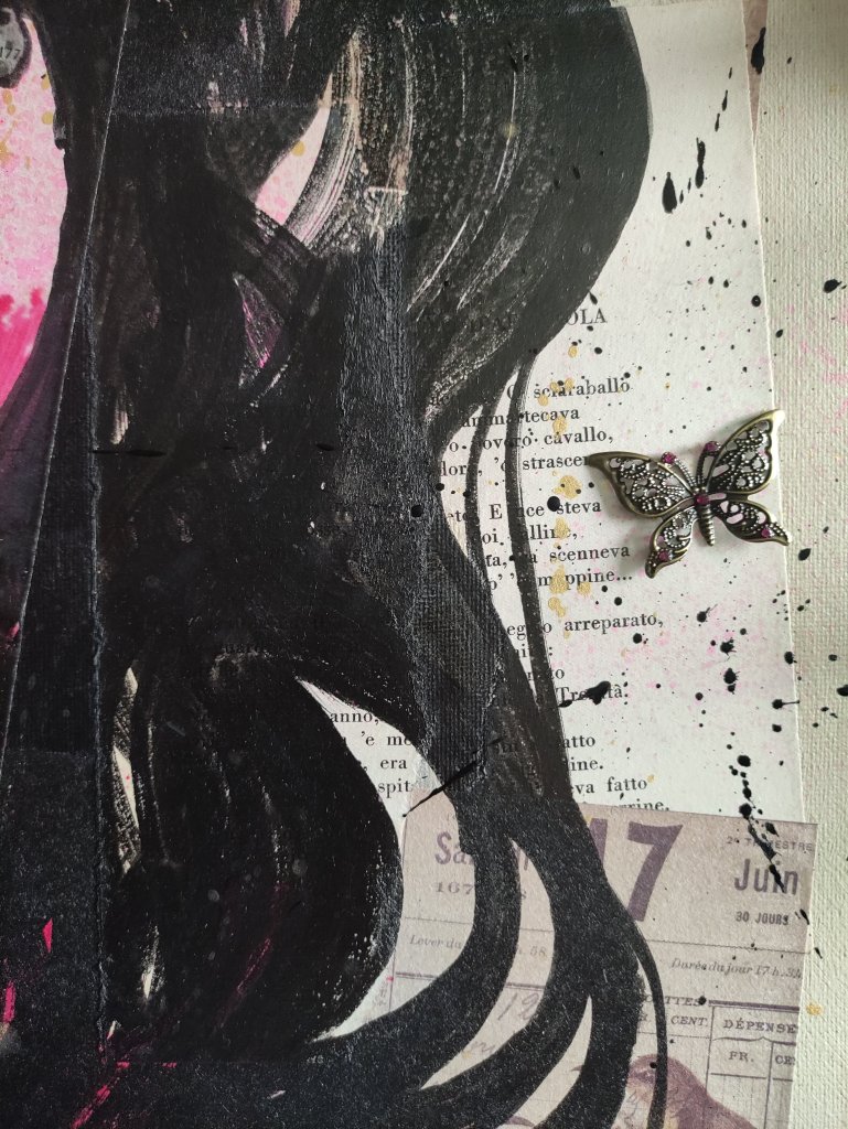 Ce visage de femme dans le style des années 20 s’accorde à merveille avec les papillons qui composent de-ci delà le fond.