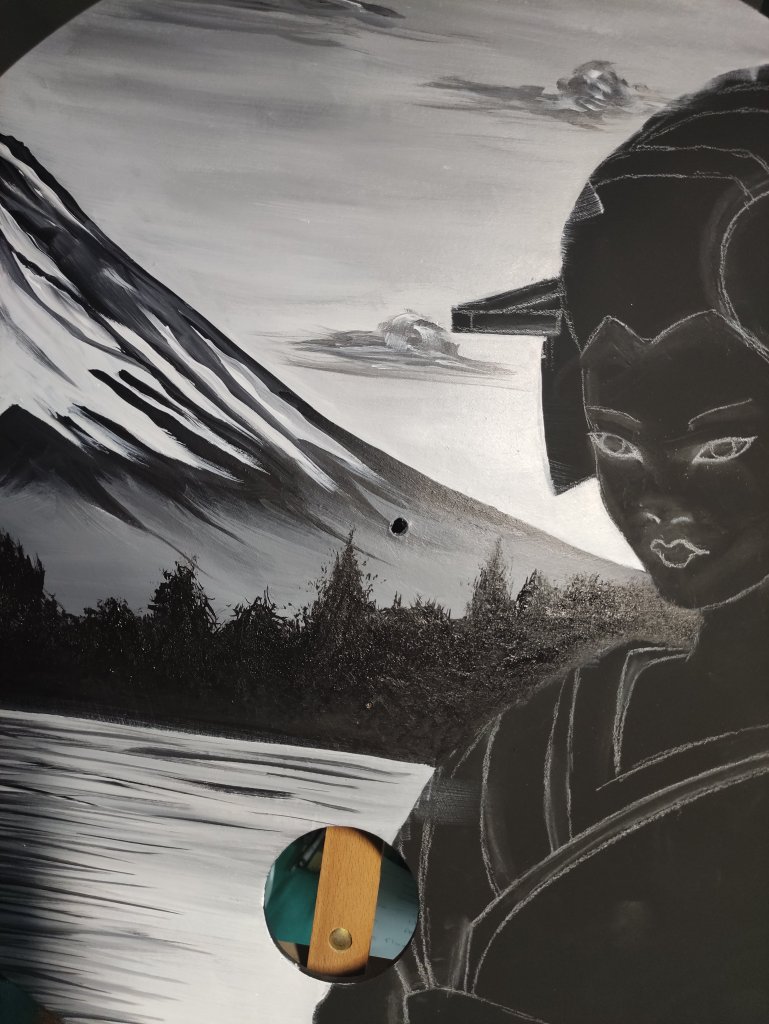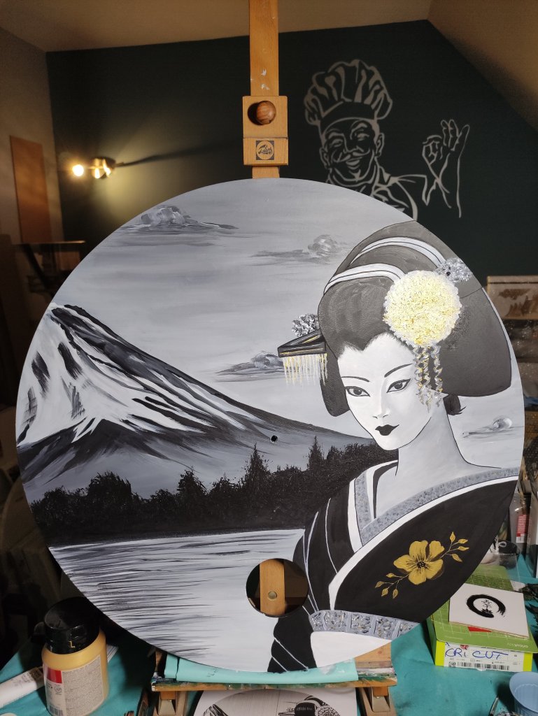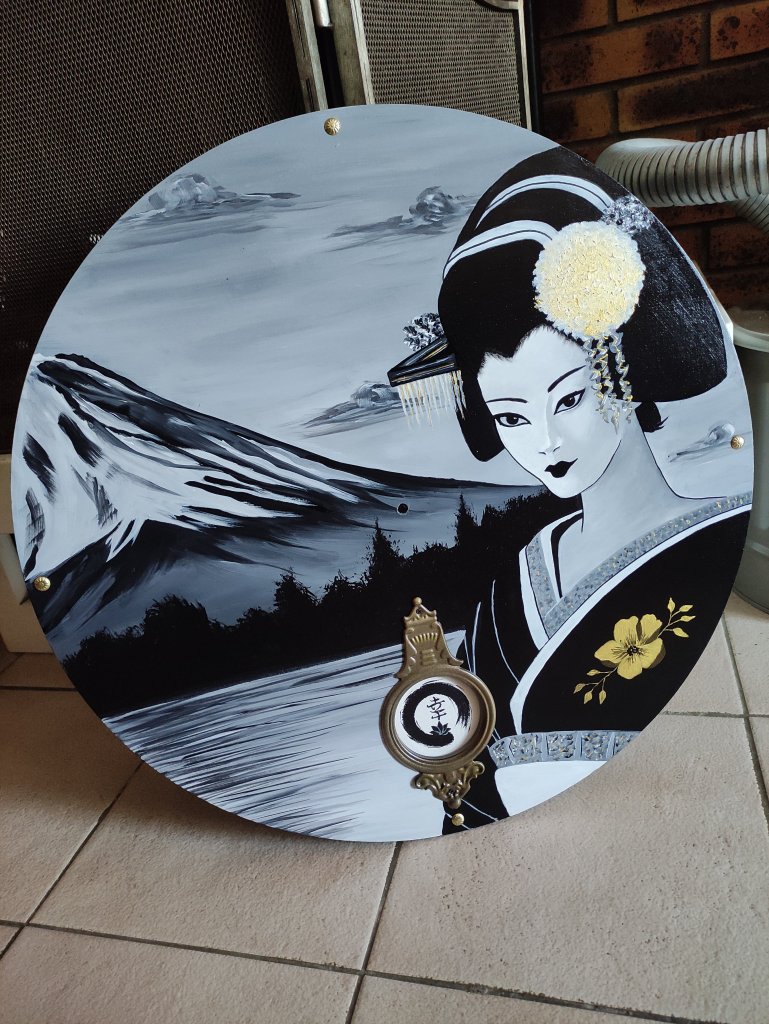 J’ai remis en place le motif en métal et collé le symbole du bonheur en arrière plan de celui-ci.