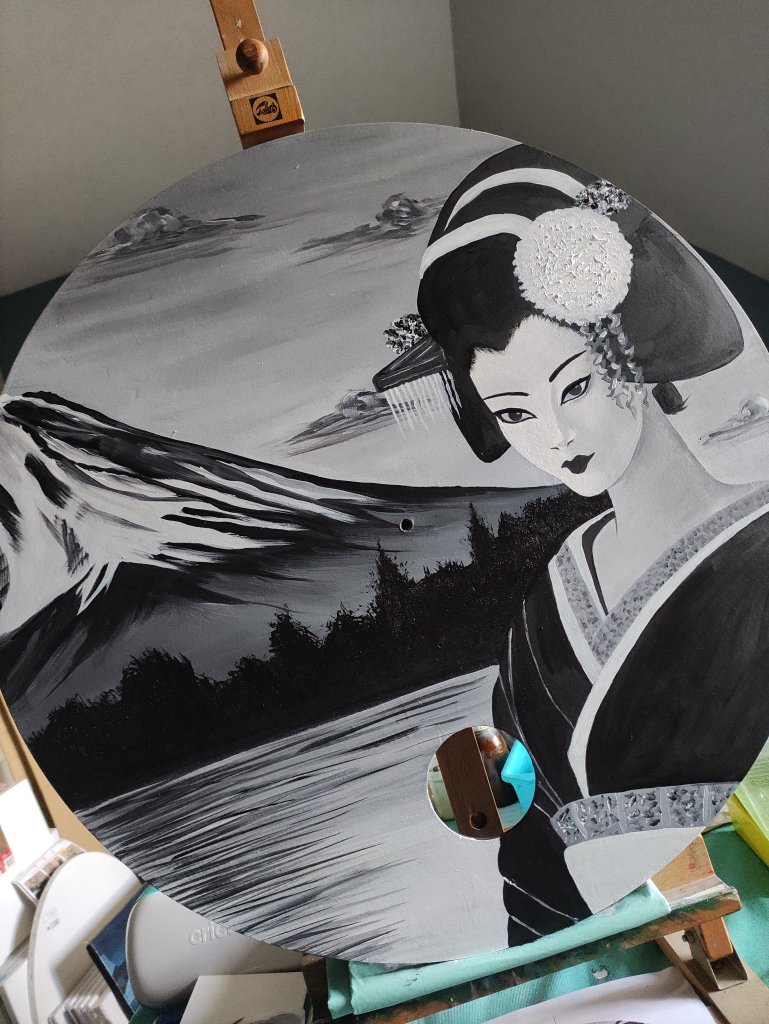 Le motif est enfin fini et l’horloge est vernis par deux couches de lasure transparente.
