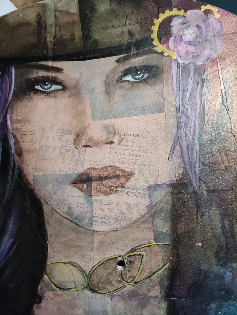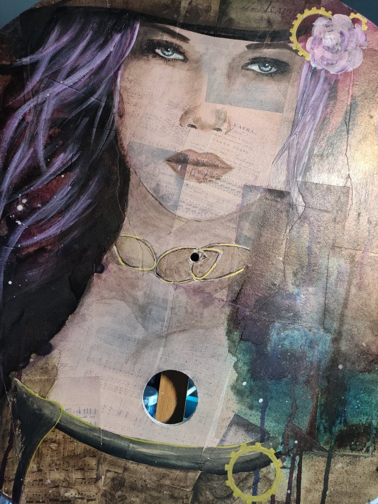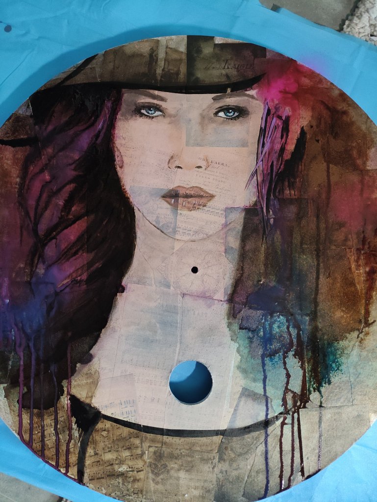 Sur fond de collage cette fois-ci, les premières couches sont réalisées à l’aquarelle. Les touches finales à l’acrylique pour plus d’intensité 😊.