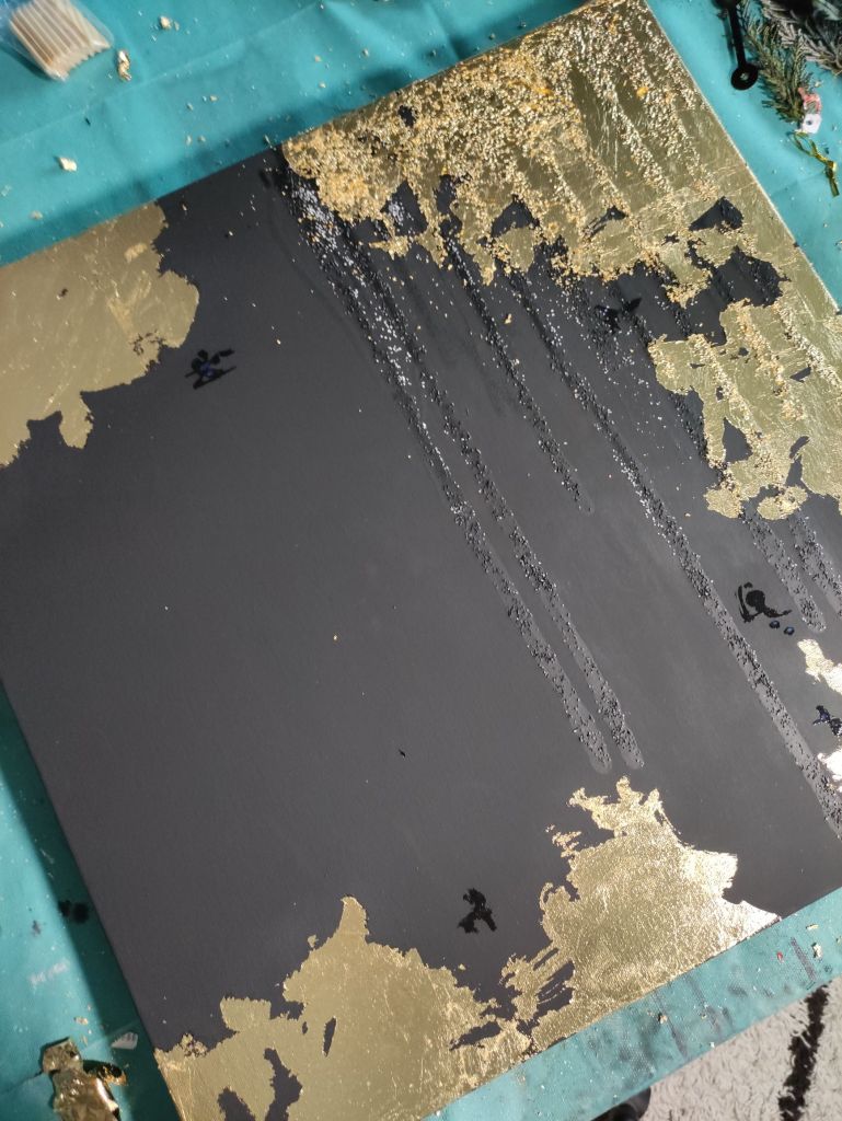 Application de Feuilles à dorer ( j’adore le contraste avec le noir😉).