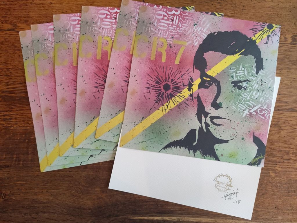 - « Ronaldo » 40×40 cm: série de 8 prints numérotés et signés au dos.