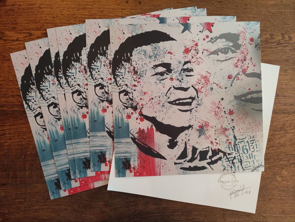 - « Mbappé » 40×40 cm: série de 8 prints numérotés et signés au dos.