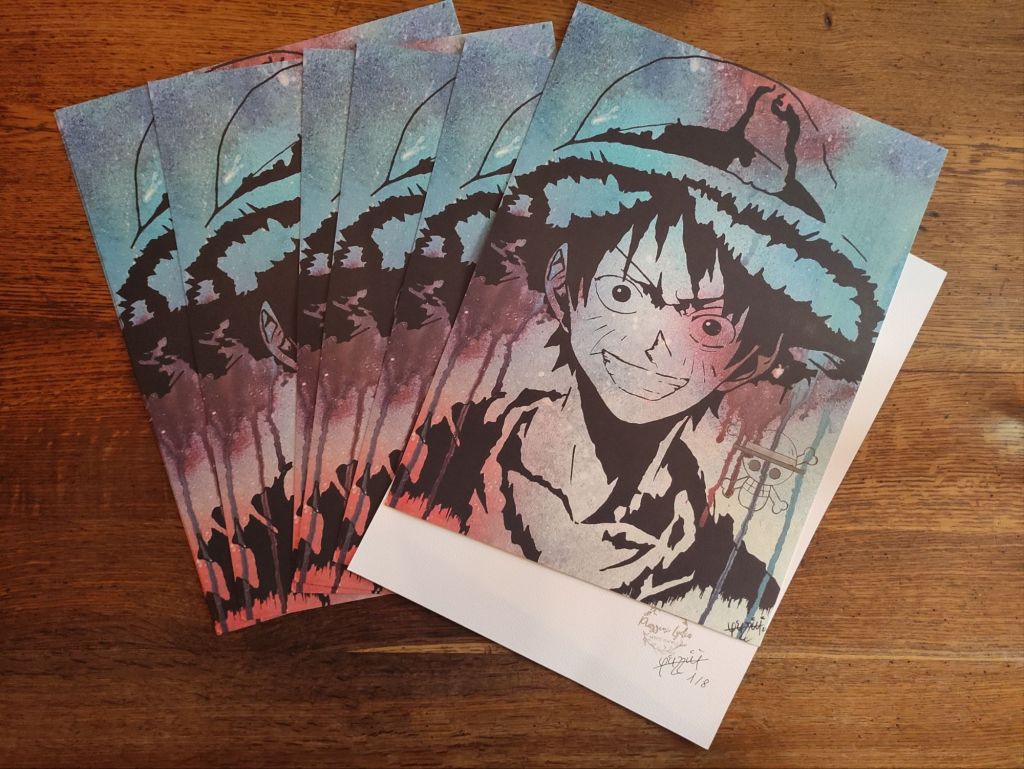 - « Luffy » 30×40 cm: série de 8 prints numérotés et signés au dos.