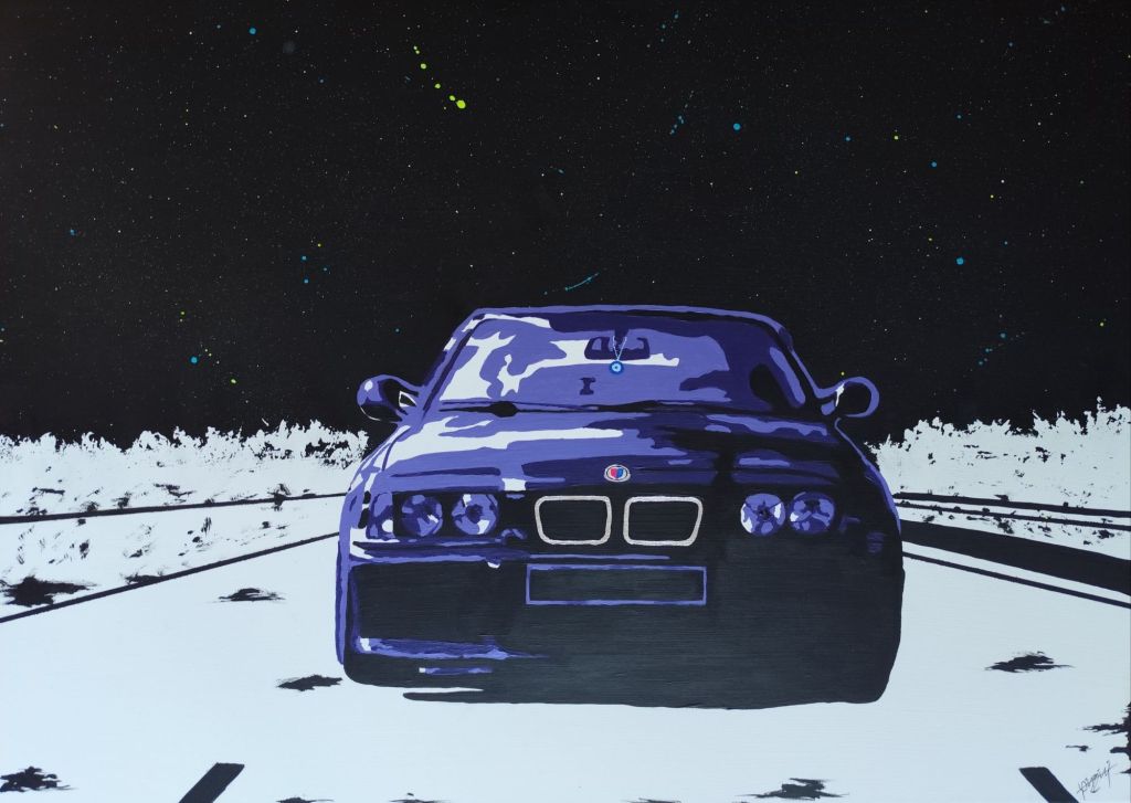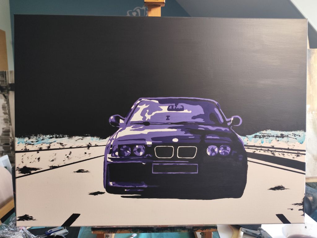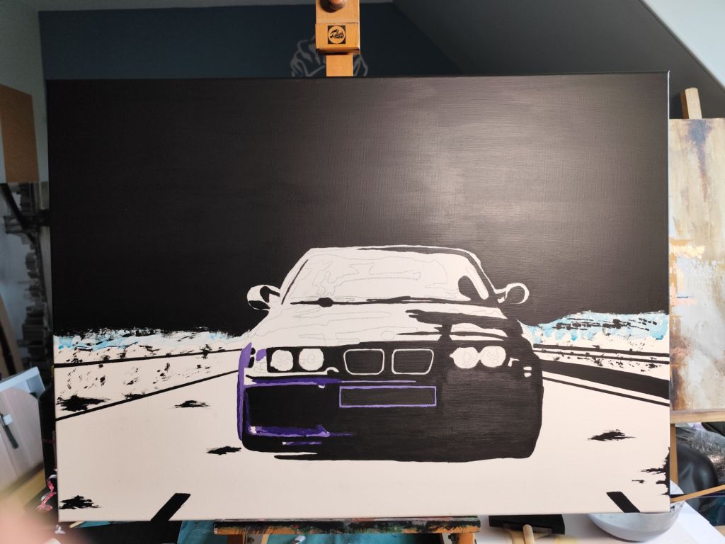 Réalisation d’un tableau avec comme modèle la voiture du futur propriétaire de celui-ci.