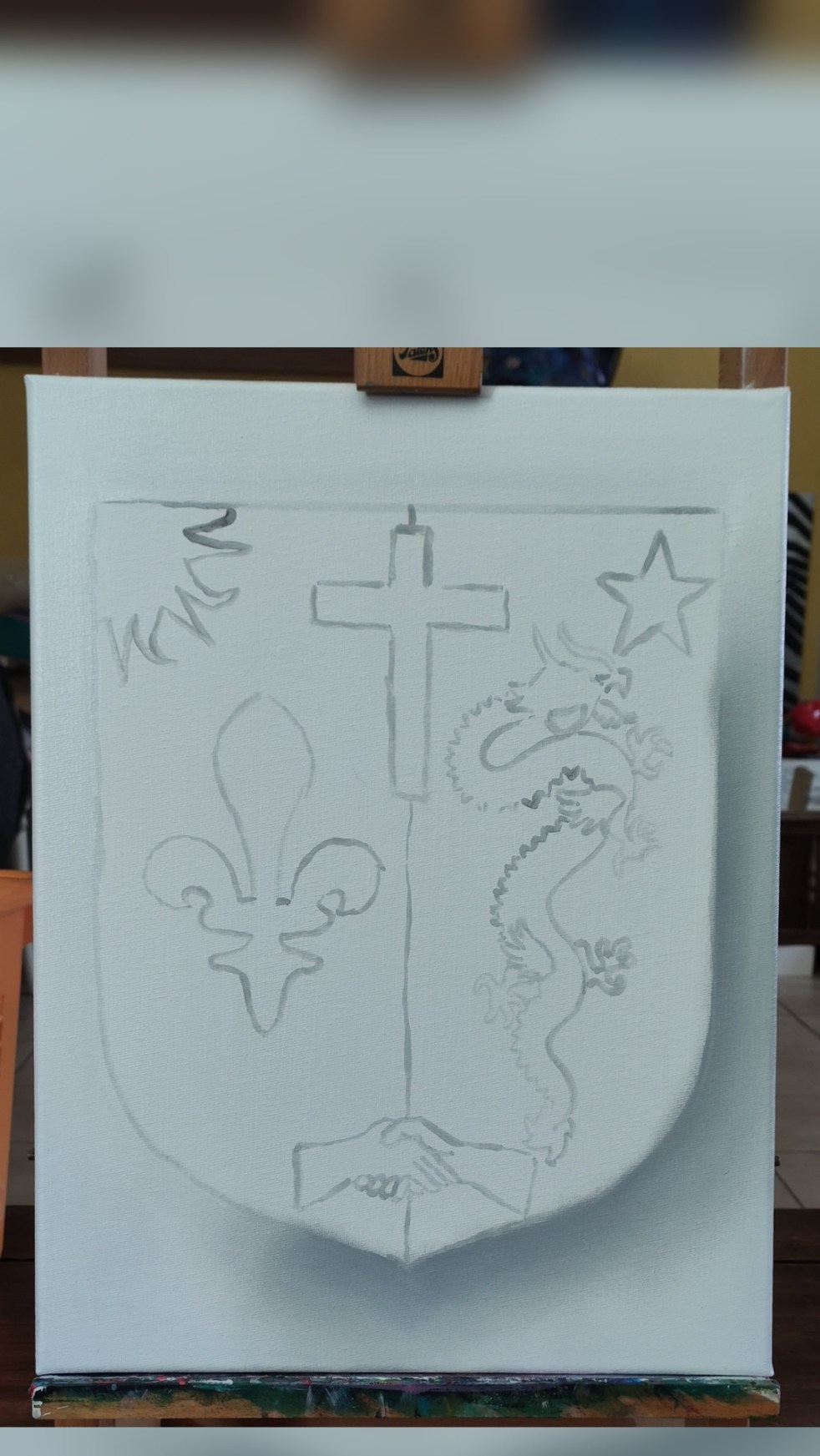 Avancé du Blason avec la mise en couleur du soleil, de la croix, de l’étoile et enfin du dragon !