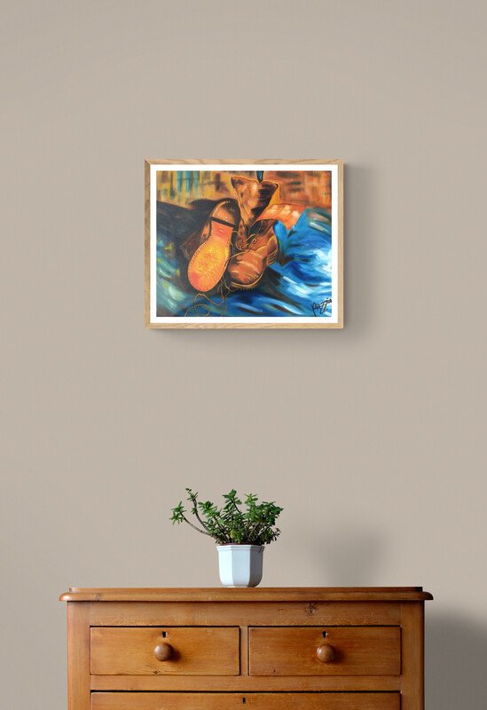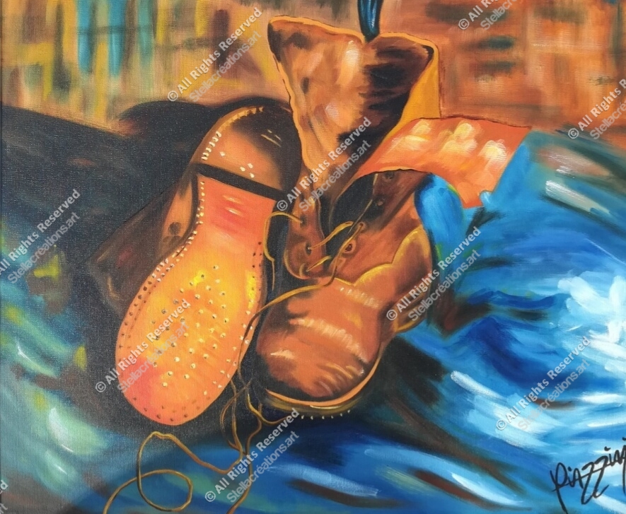 Reproduction d’après une œuvre de Van Gogh: « Les souliers » Huile sur toile 50×60 Envoi OFFERT sous 5 jours ouvrés.