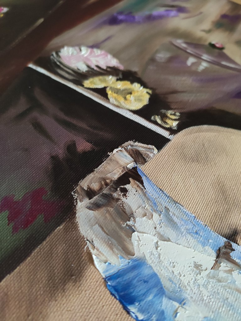 Reproduction d’après une photo de Robert Doisneau Huile sur toile 40×40 Envoi OFFERT sous 5 jours ouvrés.