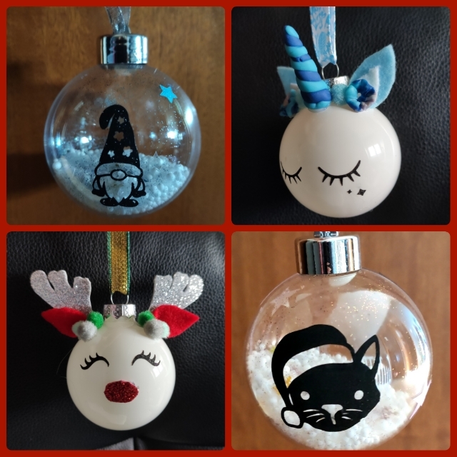 Me voilà déjà en train de préparer de jolies boules de Noël pour les marchés de Noël à venir... 2 modèles en verre au choix (6cm de diamètre): - Licorne 🦄 (plusieurs modèles disponibles) - Renne (plusieurs modèles disponibles) Plusieurs motifs disponibles pour les Boules de Noël en plastique (8cm de diamètre): > Etoile, sapin,… Lire la suite Boules de Noël personnalisables