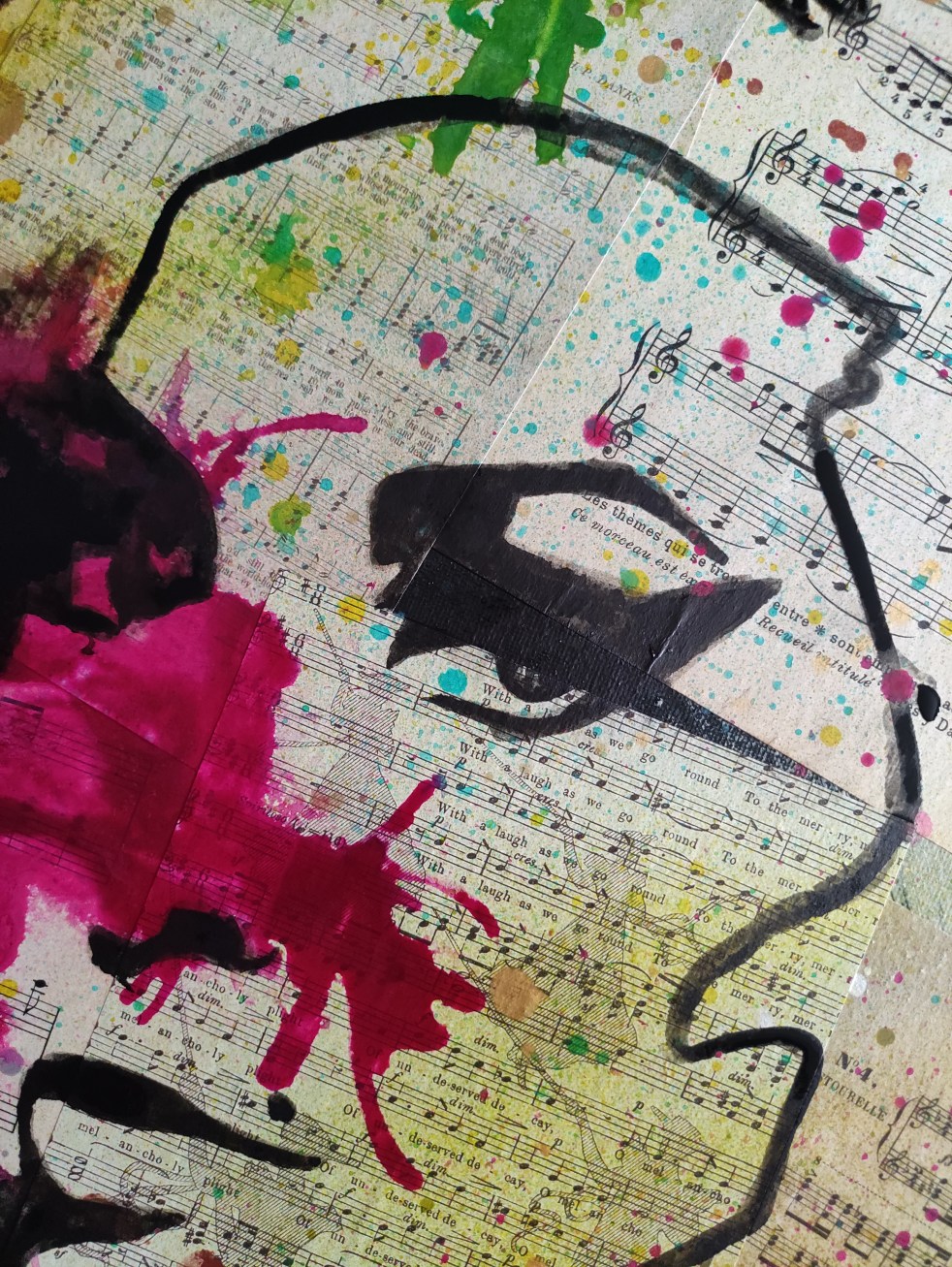 J'aime beaucoup cette série ☺️. Je ne m'arrête plus ... 😅 Du coup pour cette cinquième j'ai décidé de prendre comme modèle une chanteuse célèbre qui nous a quitté. Étant donné que c'est une chanteuse, le fond sera cette fois-ci recouvert de partitions de musique. Après avoir peint le fond en gesso noir avec quelques… Lire la suite Cinquième toile de la série « L’amour et la vie »