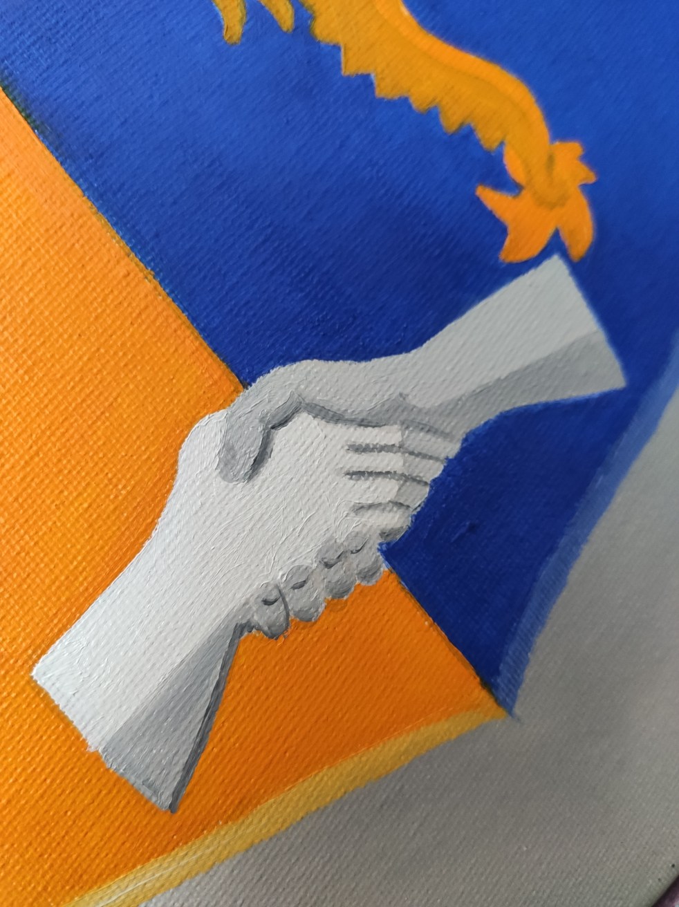 Aujourd'hui juste un petit mot pour vous montrer une nouvelle étape du blason. La mise en couleur, en noir et blanc 😅 de la poignée de main située en bas du blason. Quatres nuances sont nécessaires, allant du blanc au gris foncé.