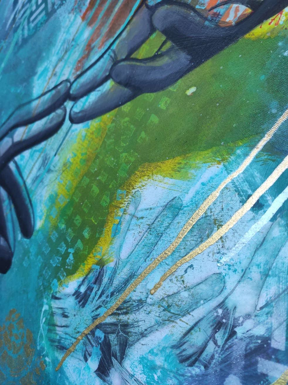 L'empathie et l'entraide, deux qualités misent à l'honneur dans une toile inspirée par la chirurgie de la main. Quand mes deux passions fusionnent 🥰